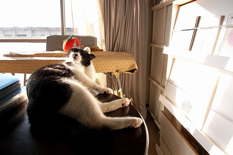今朝、私とハチしかいない仕事部屋。パソコンに向かう背中に《オハヨ》と声がした。