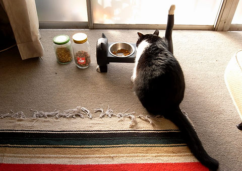 雑種白黒、2003年9月生まれ 8才! ガサツでビビリなオトコ サビコ(推定1才・メス)2011年7月にひょっこり現れる。9月より同居生活スタート。