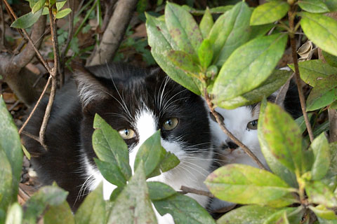 なんつって 正解は長崎のノラネコ兄弟(ハチは鼻黒で眉間の白が細いのだ)