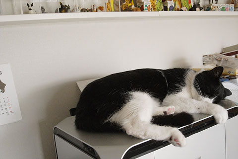 最近、姿が見えないと思うとここにいる。机下のデッドスペース。